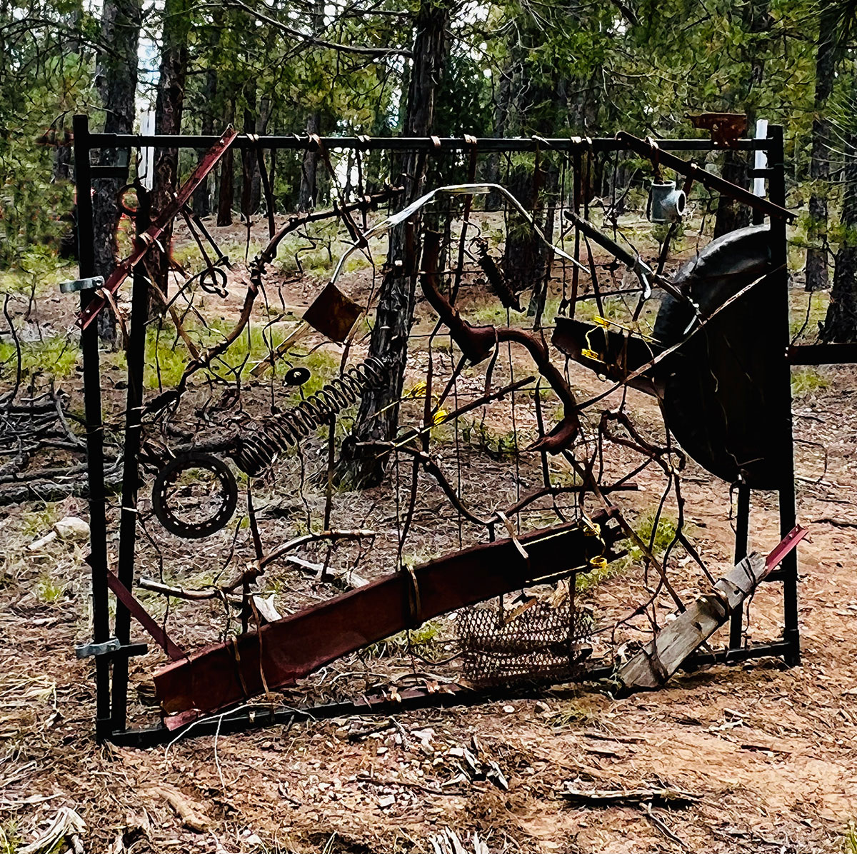 Donna and I are adding more art to the paths that we walk on our land. Placing metal works of art in the forested acres. We have plans to bring more art into the forest, since the art installation in the growing dome had to be removed (to install new panels) we have identified places to reinstall it along the trails we walk on our land.