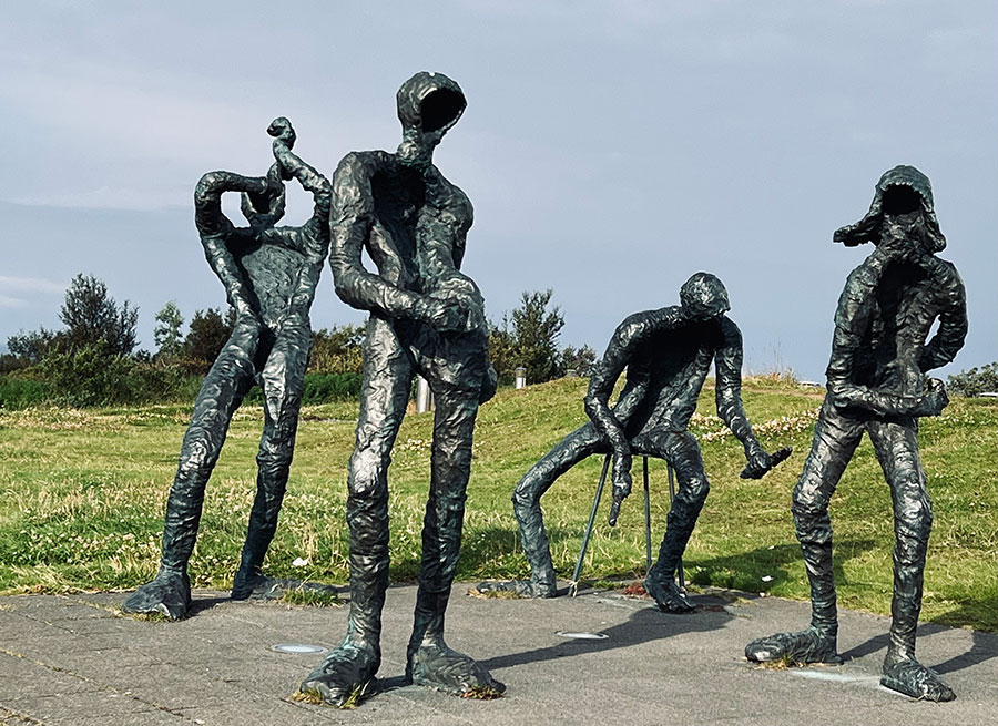 We were quite interested in a sculpture called Dance, which is a grouping of four bronze statues, about two meters tall, outside Perlan. Created in 1970, by the artist, Þorbjörg Pálsdóttir (1919-2009), she gifted it to the city of Reykjavík in 1995. The artwork is described as demonstrating fun, dance, and music, a time of coming together. As I looked at the sculpture I was struck by the head and chest being hollow. While it’s meant to depict happiness there was something missing.