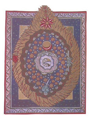 From indigenous cultures, we also see the relationship of the Mother Goddess to creation through the tales of weaving and spinning which are historically seen as women’s work, but tied to the Great Goddess as the weaver of the web of life, and human fate, and the spinner of the cosmos.[4] To the Navajo people, Great Spider Woman is the original weaver of the universe, and every woven creation made to this day is believed to be a sacred representation of her.[18]