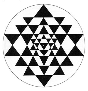 Campbell also links Pythagorean thought, and the tetraktys, the upward pointing triangle, to the Indian tantric diagrams of the female yantra. “This triangle is an adaptation of the prominent genital triangle of the typical Neolithic female statuette. The dot is known as the bindu, the ‘drop’ (which like a drop of oil in water, expands), and the triangle as the yoni (womb, vagina, vulva; place of origin, birth and rest).” The Pythagorean idea of the Music of the Spheres, can also be related to the concept of Gaia and Uranus, for contained within the concept of the Music of the Spheres is the belief that sound, the very nature of the universe, resides in all living things. “Within the field of mythic thought...both metaphorically (as one’s nature knows) and historically (as Gimbutas shows) the God beyond God is God’s Mother.”[22]