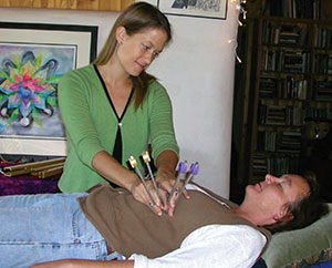 Acutonics is being integrated into many diverse fields including nursing, massage and bodywork, music therapy, psychotherapy, Veterinary Medicine, Astrological prescriptions and Earth Healings. Nurses are using it in labor and delivery and in post- operative situations, as well as cancer support. The Acutonics Tuning Forks are being used to reduce anxiety prior to surgery, and post surgery they are being used to reduce nausea, relieve inner cranial pressure, and help to heal scar tissue. The higher frequency Tuning Forks are used to repair the tears in the Auric grid or to fill it out and maintain its integrity, if it has folded in response to soft or hard drugs.