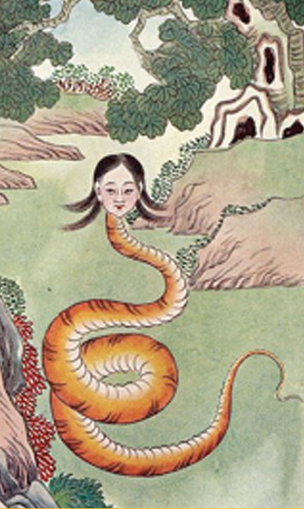 In the Year of the Water Snake it is appropriate to tell some of the earliest creation myths of ancient China, the legends of the female divinity Nü Gua, a snake goddess. Many of these stories were transmitted orally; the specific details are influenced by the evolution of culture and by the philosophical, religious, and political movements that influence the retelling, reorienting, and transforming of the narratives. These stories are filled with supernatural beings, woven into shamanic rituals, and grounded with the cosmogony of tribes and clans that were later adopted into mainstream dynasties and cultures.