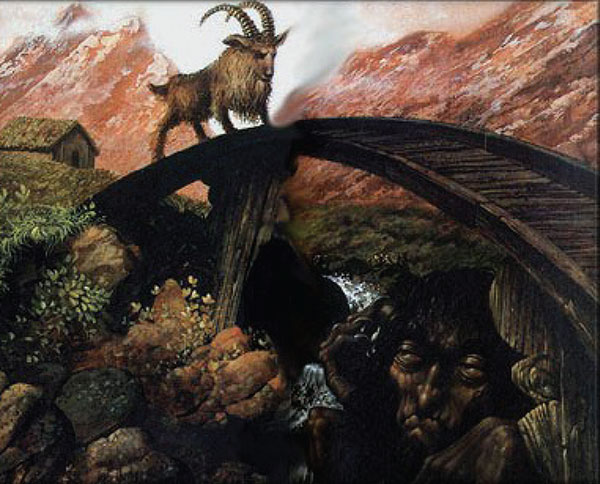 "The Three Billy Goats Gruff,” a Norwegian fairy tale, provides insights into the cleverness and perseverance of goats. This tale introduces us to a goat family that no longer has food to eat on their side of the river. In order to reach a rich meadow where grass is plentiful, they must get to the other side of the river. Unfortunately, this requires them to cross a bridge controlled by a nasty and fearsome troll. The three goats strategize a way to get across the bridge. The first goat to cross is the smallest. The troll jumps out, threatening to gobble up the goat. In a meek voice the littlest goat convinces the troll to wait for a heartier meal when his plump bigger brother comes across. The troll is convinced that the first goat is simply not worthy of his appetite, and thus the littlest goat is allowed to pass. A short time later the medium-sized billy goat cautiously approaches the bridge. As he begins to cross, the troll jumps out once again, ready to gobble up the goat. With a stern demeanor, the middle-sized goat convinces the troll that the greatest meal is yet to come, and he should save his appetite. The troll once again is persuaded to wait for an even bigger meal, and the second goat passes to safety. Now it is time for the biggest and fiercest of the goat brothers to pass over the bridge. Once again the troll jumps out, but the third billy goat is so big that he effortlessly kicks the troll off the bridge. The troll falls into the stream, and the third goat joins his brothers on the other side of the bridge to partake of the meadow’s rich bounty. The troll, outwitted by the goats, is humbled; and, while he continues to live under the bridge, he never again prevents anyone from crossing. Perhaps he has decided that a simple meal of fish and greens is a safer alternative.